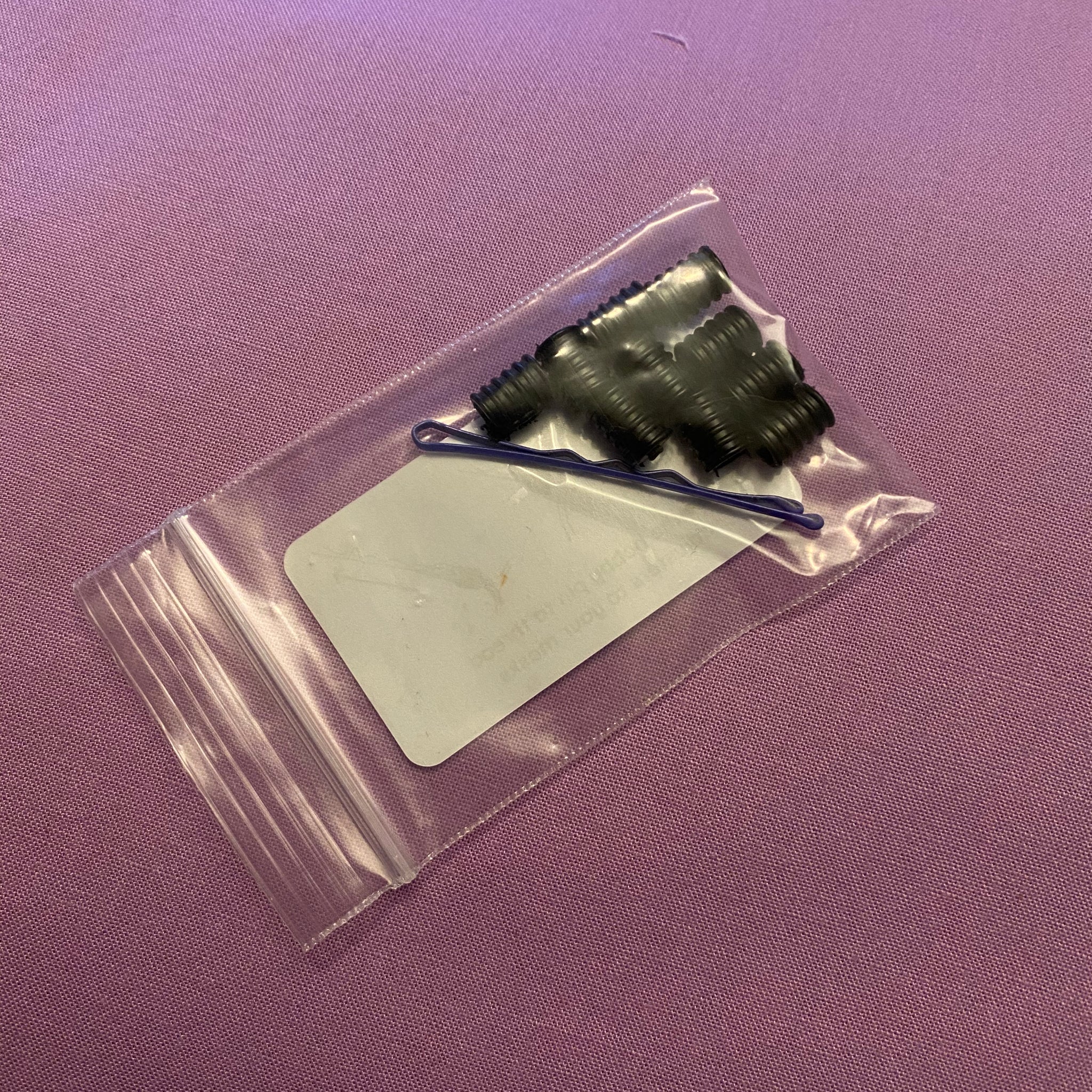 This is a 10 pack (5 sets) of elastic adjusters.  They come with a bobbin pin (the tool for attaching them to your masks) and instructions. These will work with any masks that have 1/4” elastics, not just ours!